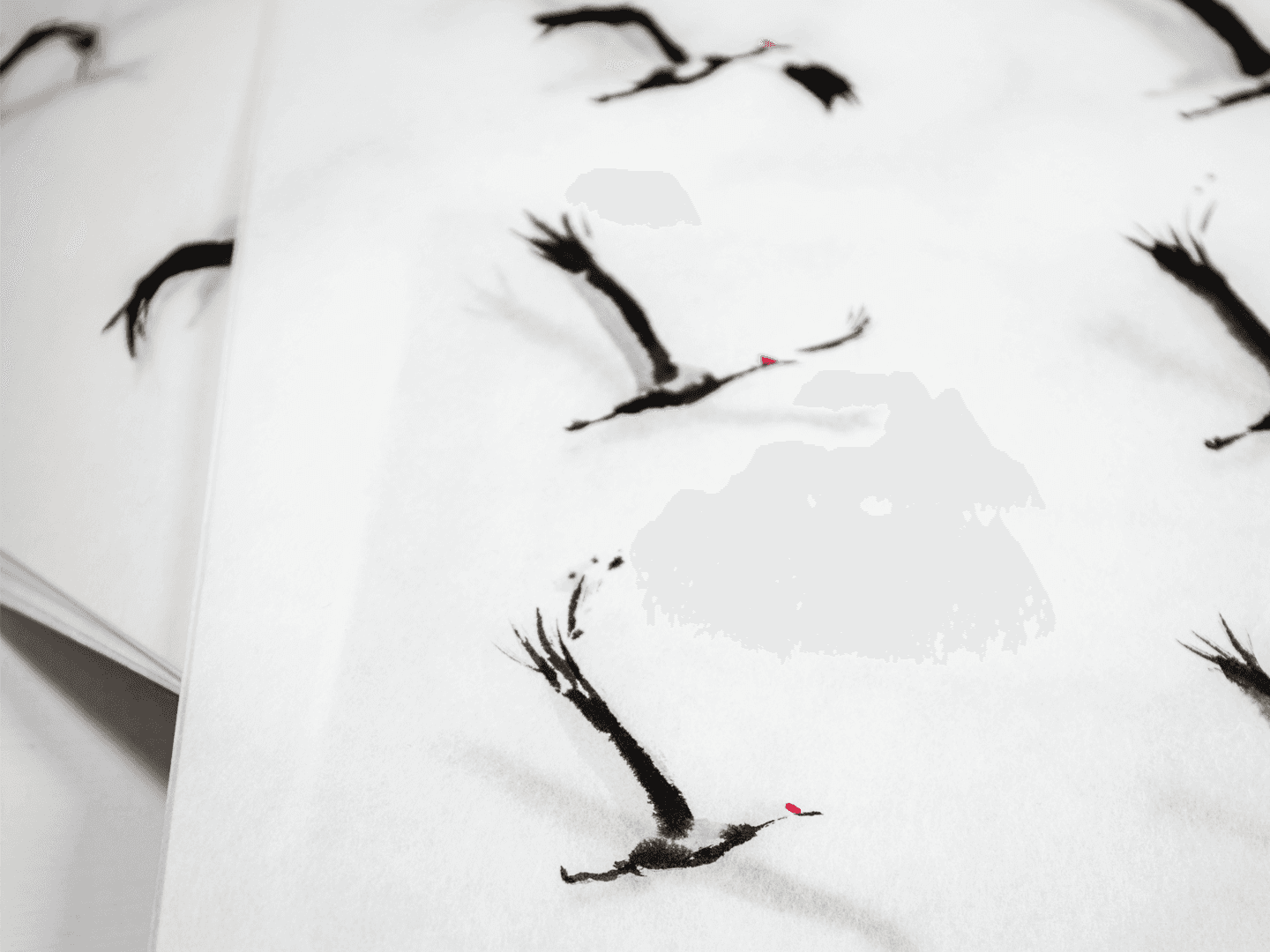 Frame-by-frame ink paintings of cranes in flight by Leo Crane