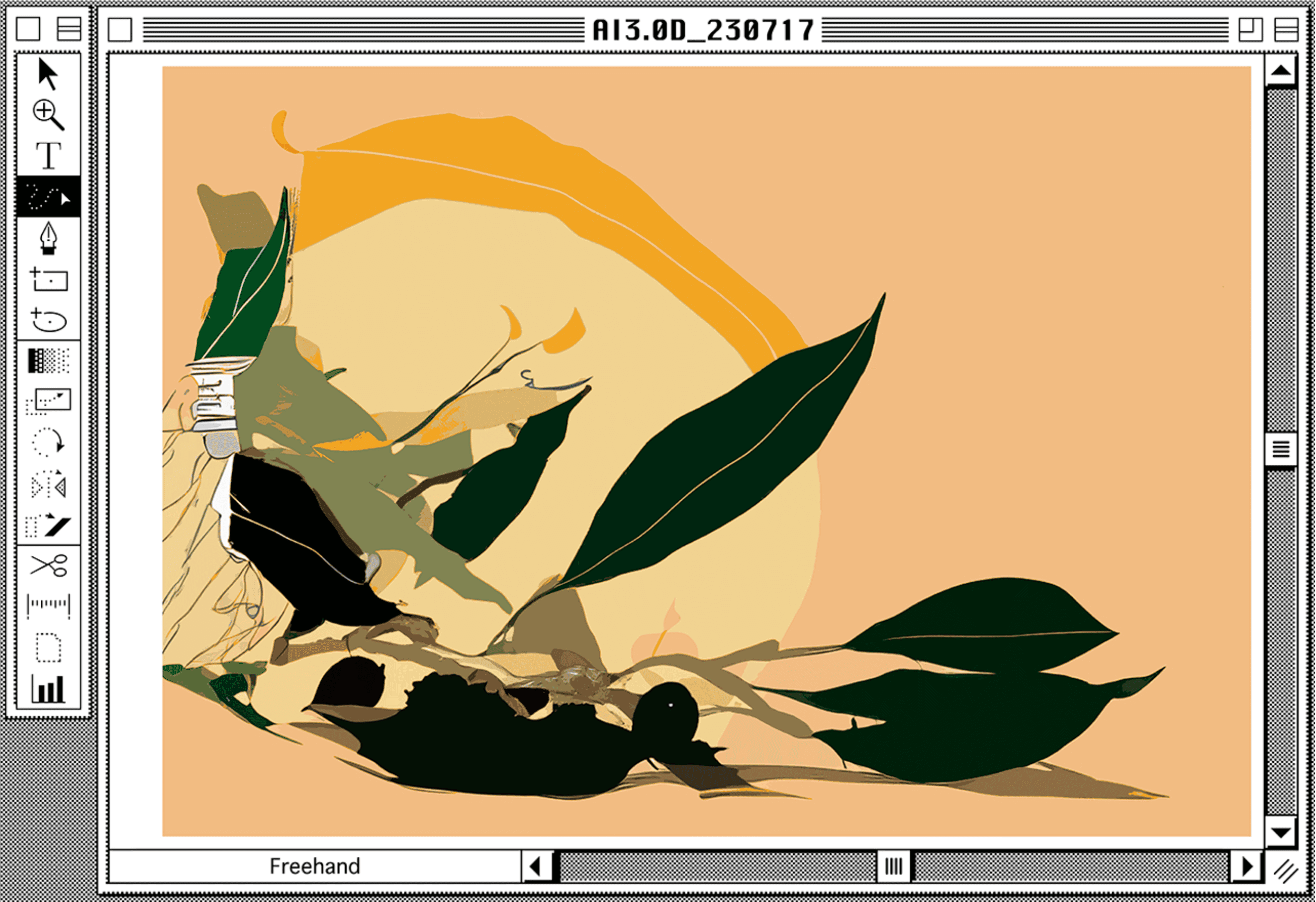 In addition, I have always resisted the pressure to upgrade constantly. I still use software and hardware that are considered obsolete, including Adobe Illustrator 8.0.1, because I don't accept that older tools should automatically be abandoned. I treat it as an experiment to explore how long I can keep producing vector works with this version - and what does it mean that it still remains sufficient for my purposes? Working with these early tools is a quiet form of resistance to built-in obsolescence, and at the same time it keeps files from the 1990s ongoing in the studio - rather than as frozen relics.